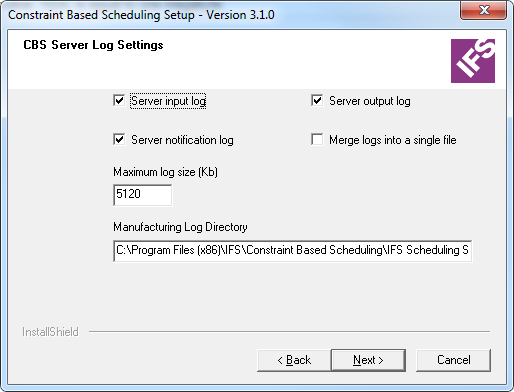 Manufacturing Log Directory | The folder in which the log files will be placed. By default, this is a subfolder of the folder in which your Manufacturing Scheduling Server will be installed. You can change this setting by entering a new path in this field. |