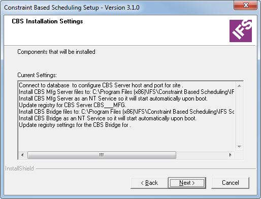This document describes how to set up your IFS Constraint Based Scheduling (CBS) server and/or Communication Bridge and how to prepare your system to support a successful installation.