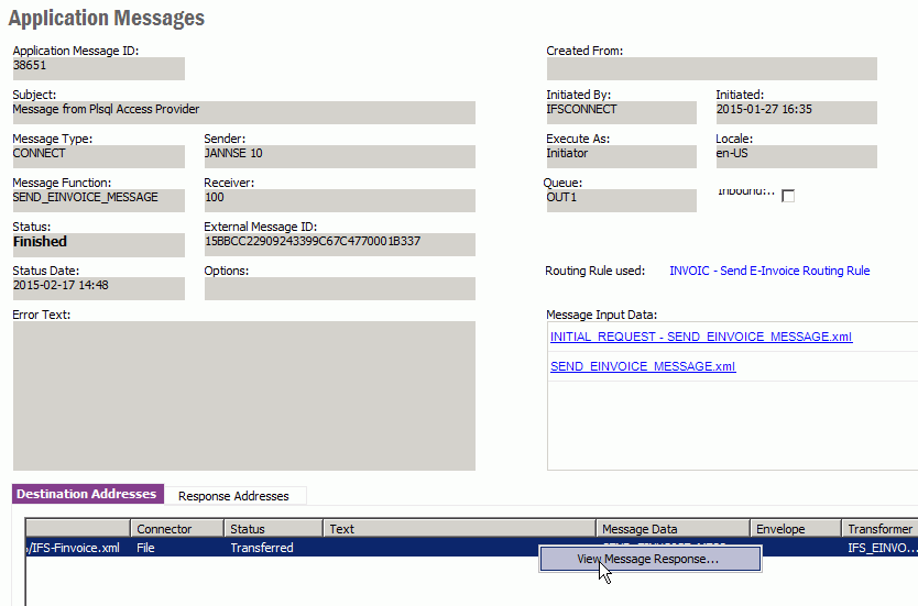 Select Show Details in the context menu or click on the message id link to open the detailed application message.
