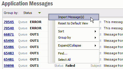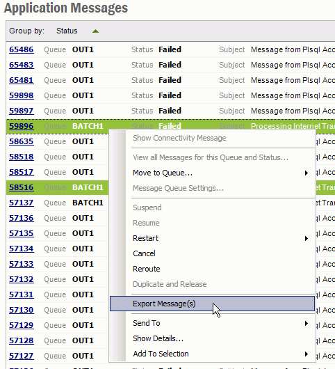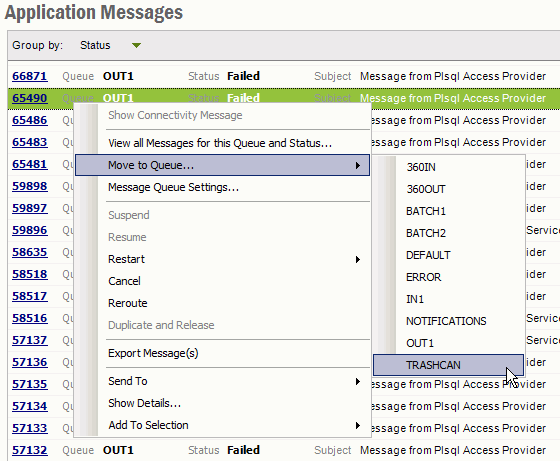 Note: Messages that are created with address lines from the very beginning are not routed by the Router and do not have any corresponding routing rule. Rerouting of such messages will then fail. Messages created by cloning templates in Application Server Tasks, i.e. Print Jobs and Connectivity messages are examples of such messages - those reside typically in one of the Batch queues.