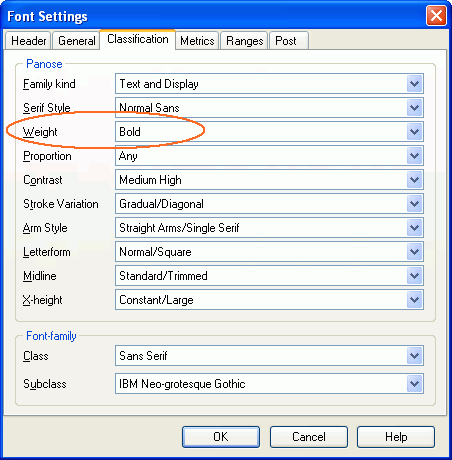 In the General tab set the Classification Weight to Bold.