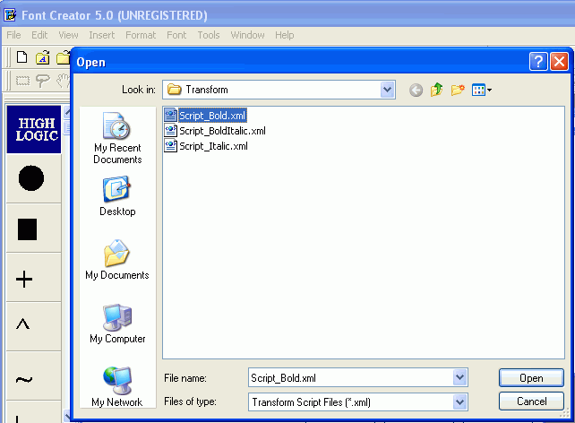 This will list down a set of available scripts: bold, italic and bold-italic for you to choose from. Select Script_Bold.xml and press Ok on the browser window. See below.