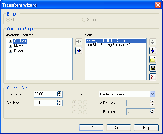 Note: This guide was prepared using Font Creator 5.0. The current version is 6.5. The flow is basically the same, but properties have moved between tabs and the bold script is available directly in the Glyph Transformer as an option.