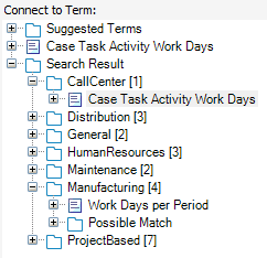 Figure 2. A list of suggested terms that can be connected to the selected record.