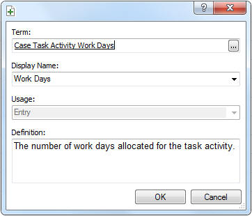 Specify the term to connect to in the Term reference box. Select a Display Name and a Usage in the drop down lists. You can see the basic text for the selected usage in the Definition field.