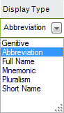 Expanding the term gives you a list of display names. Double click on a display name or one of the usage definitions to create a term binding. You can also right click and select the Connect Localize Attribute menu item. The term's default usage is used if you select a term or a display name and not a specific usage. You can also change the term display name by using the drop down list for Display Types, see figure below.