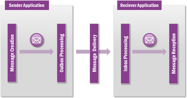 The message transfer occurs between the Out Message Box and the In Message Box which can be present either in the same or different databases.