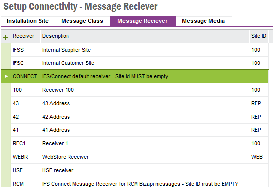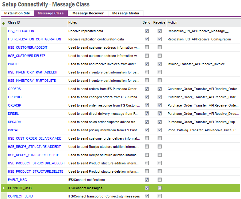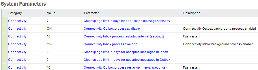 The Connectivity messages provides basic integration functionality. The concept is described in About Connectivity. This page describes the forms in use for operating the connectivity functionality.