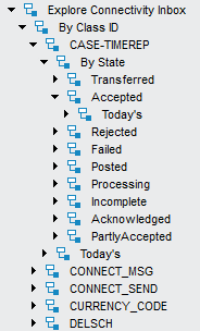 Connectivity Outbox can be explored using three main categories Class ID, State and Media Code. Each of those categories has Today's as a sub category.