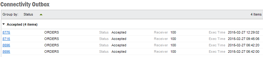These windows can be used to browse or administrate messages contained in the Connectivity Outbox.