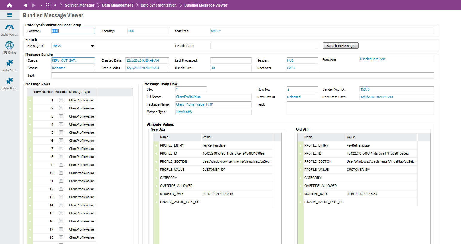 The new attribute string and the old attribute string of the synchronization message is also visible here. They can be used to identify the reason for a message failure.