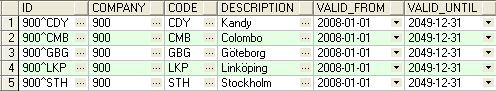 Each line has a unique identity created as a concatenation of the company and the code part value.