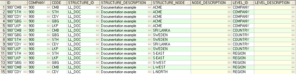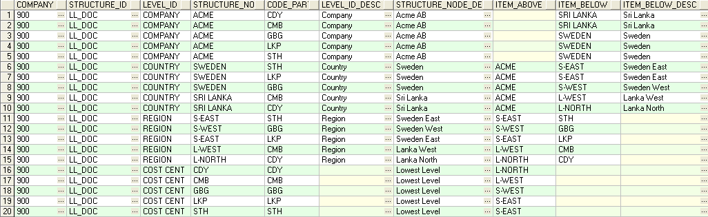 There are however also cases where the levels are explicitly defined, like in the case above for Accounting Structures in Financials. Each level in the structure is given an identity by the end-user. The main purpose is of course to simplify using accounting structures for analyzing purposes. So in this case a structure consists of the following items,